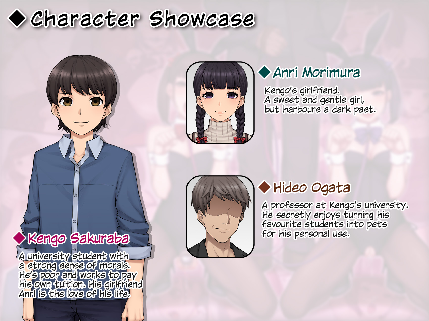 A professor at Kengo’s university. He secretly enjoys turning his favourite students into pets for his own private use.